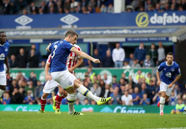 Referee Michael Oliver felt Phil Bardsley's contact with Ashley Williams on a dash towards a near-post corner was enough to merit a penalty, presenting Leighton Baines with a golden opportunity to put Everton ahead.