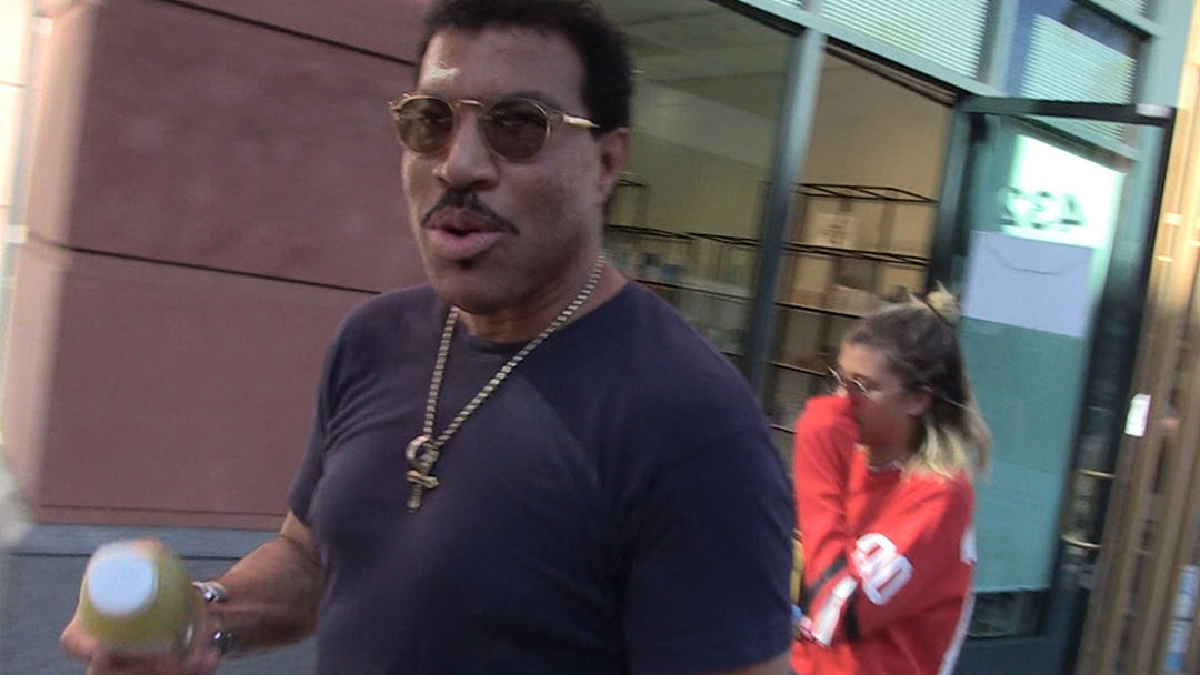We got Lionel and Sofia leaving Pressed Juicery in Bev Hills, and he was happy to talk about all things citrus, but just watch as our photog asks if he's giving the Biebs his stamp of approval.